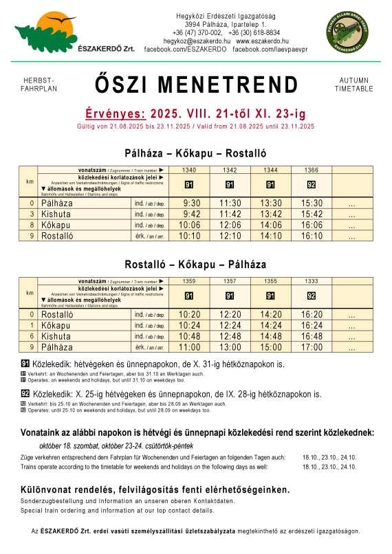A PÁEV menetrendjeKészült: 2025. május 05. hétfő, 12:25 | Nyomtatás Éves menetrend: Hivatalos menetrend - érvényes:az esetileg közzétett rendkívüli menetrendek és hirdetmények korlátozásainak kivételével a 2025. III. 15-től XI. 23-ig terjedő menetrendi időszakra.