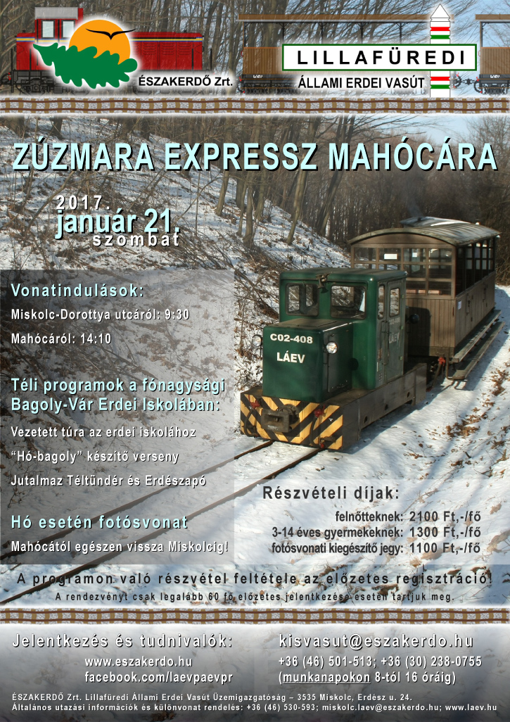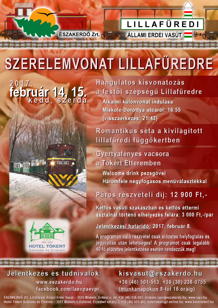 Elkészült a Lillafüredi Állami Erdei Vasút és a Pálházi Állami Erdei Vasút 2017. évben tervezett rendezvényeiről és a kedvezményes napokról összeállított tájékoztató.